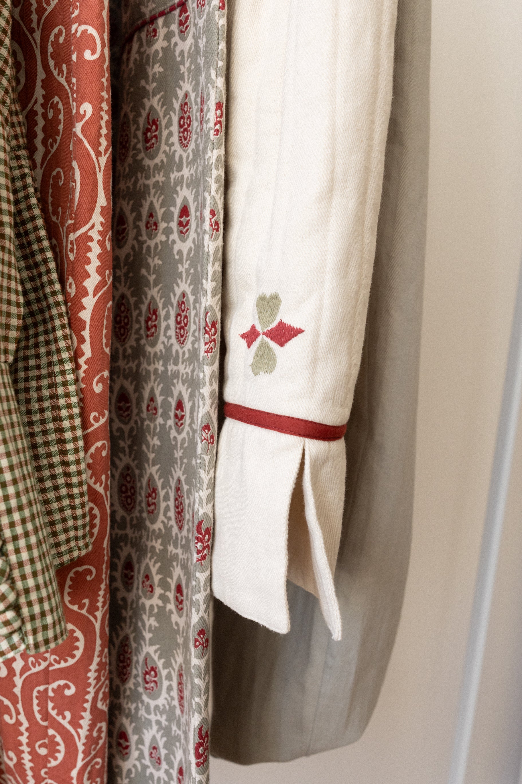 Detalles de bordados artesanales en delantero, trasero y puños.